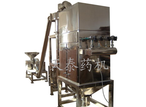 40B型吸塵粉碎機組由粉碎機、旋風(fēng)分離器、高效空氣過濾集塵器、平臺、控制箱等部分組成。適用于醫(yī)藥、化工、食品等行業(yè),粉碎干燥的脆性物料,是粉碎與吸塵為一體的新一代粉碎設(shè)備,它對軟化點低,粘度大的物料不宜選用本機。 本機組與粉碎物料相接觸的零件全部采用不銹鋼材料制造,有良好的耐腐蝕性,機架四周全部封閉,便于清洗,機殼內(nèi)壁全部經(jīng)機加工,達到表面平整、光滑。使藥品、食品、化工等生產(chǎn)更能符合國家“GMP”標準。